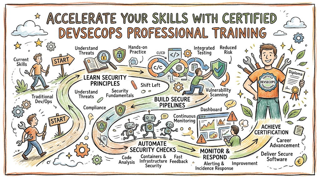 This path is a specialized journey for those who want to make security a core component of the development process. It involves learning how to automate security testing and compliance checks so that they happen as fast as the code is written. Professionals will gain expertise in identifying vulnerabilities early and building resilient systems that can withstand modern cyber threats. This path ensures that security is never a bottleneck, allowing for both safety and high-velocity delivery.