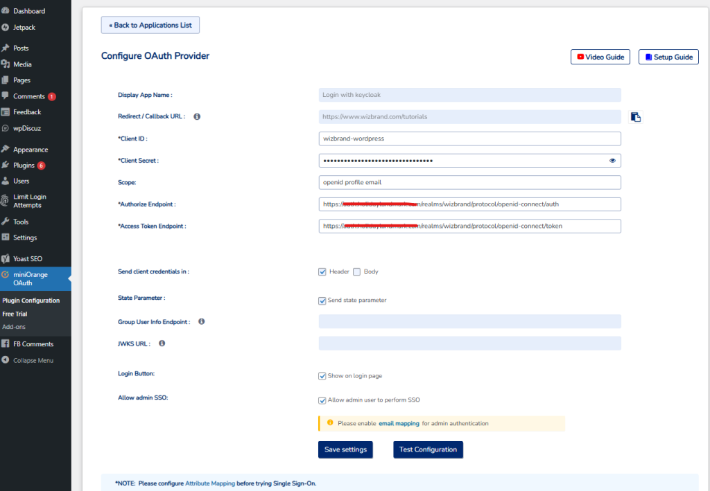 define('FOIDC_KC_CLIENT_SECRET', '***'); // replace